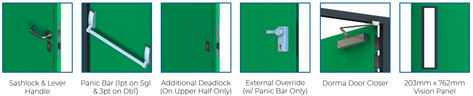 Choose from a range of hardware, vision panels, louvres, and threshold options to tailor the door to your exact requirements.