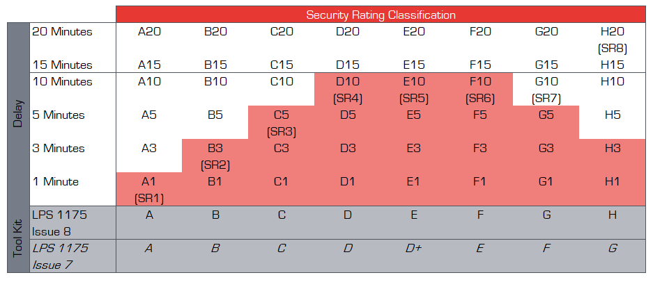 LPS 1175 Issue 8 was the new testing standards which were published back in January 2019. Every new security product tested from the January 2019 will be tested to the new revision. Issue 8 has introduced several changes to provide a more realistic view of attack scenarios, with a more in depth understanding of potential risk. This latest revision moves away from specification of a single security measure. Instead, Issue 8 defines effective resistance in support of a layered approach formed of multiple products. These products are evaluated according to the threat level and minimum delay in minutes.