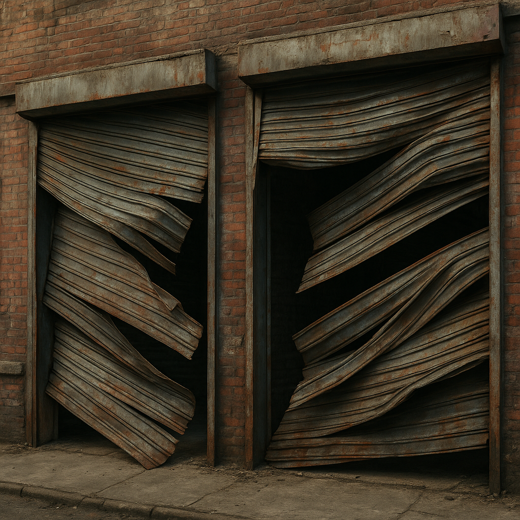 These heavy-duty shutters are perfect for gritty warehouse or garage scenes. They not only look the part but also function as real barriers—essential for realism when actors interact with the set.