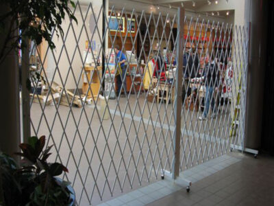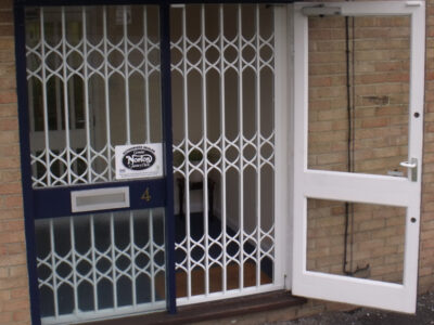 These are usually fitted internally. The advantage of these grilles is that they can lock and slide back to one side or join in the middle and fold back to both sides. They are very neat with the benefit of being able to open and close the grille when required. The grilles can be fitted over Windows, Doors and any other opening. We have folding grilles specifically for Fire Exit Doors as well as a Trackless Barrier System.The range includes Insurance Approved Folding Security Grilles, which have been tested and certified by the Insurance Companies. The grilles are tested using different tools and over certain length of time, the more aggressive tools used and the longer attack time means a higher security rating.