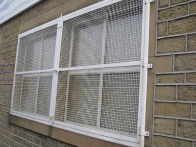 Usually, Window Mesh is fitted externally to prevent windows and glass from being vandalised. The Window Mesh comes in different types starting with the basic weldmesh which is cost effective and would stop bricks. We then have a Perforated Mesh that has smaller holes and would stop smaller projectiles ie; stones and air pellets. We also have a Polycarbonate Window Shield that is 100% clear, it’s an expensive option but protects against many projectiles.