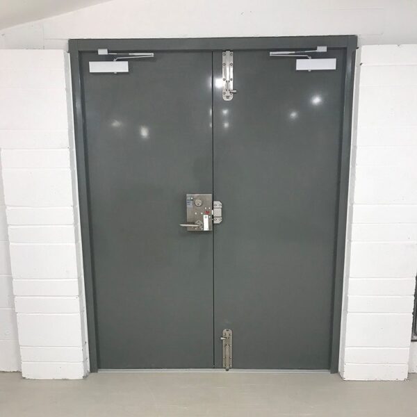 This heavy-duty construction provides an approximate weight of 80kg per m², giving it exceptional rigidity and impact resistance. The welded frame, manufactured from high-tensile galvanised steel, is reinforced at hinges, lock keeps, and fixing points, ensuring the entire door set remains secure even under extreme pressure.