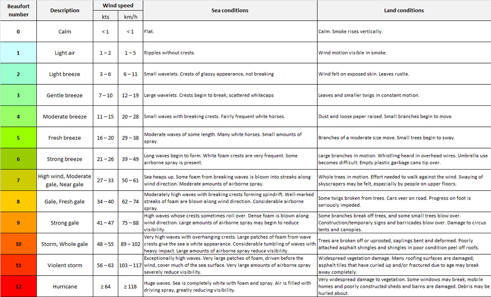 WIND FORCE - BEAUFORT SCALE